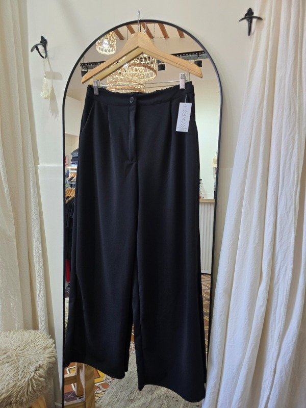 Palazzo tela sastrera, con botones, cierre y detalles de bolsillos parte trasera. Varios talles disponibles (grandes)