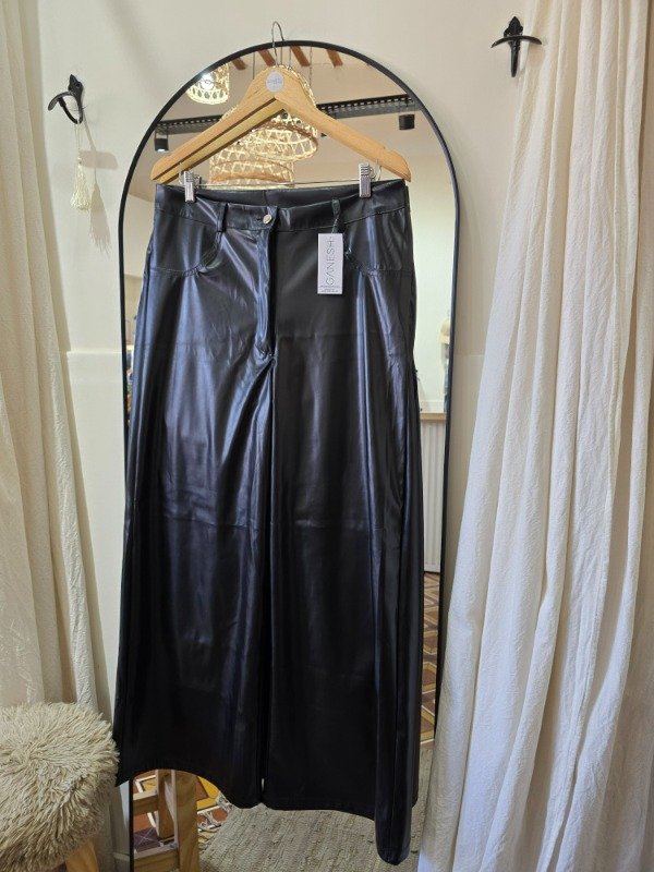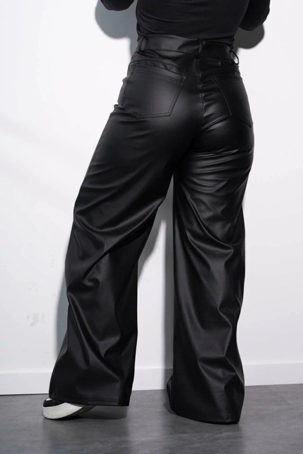 Pantalón Wide leg ecocuero con bolsillos parte de trasera. Talles grandes