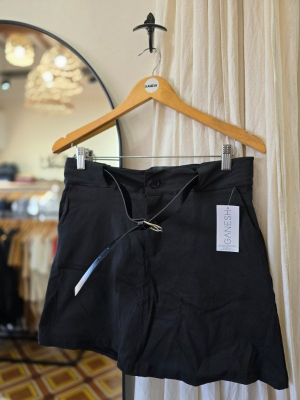 Pollera bengalina con short abajo, detalle de bolsillos y cinto ecocuero incluido.