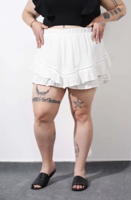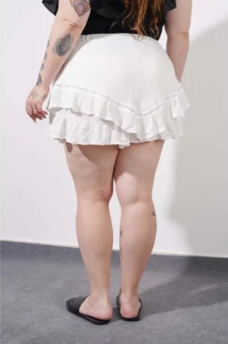 Short pollera de bambula con detalle de puntilla. Disponibles en talles grandes.