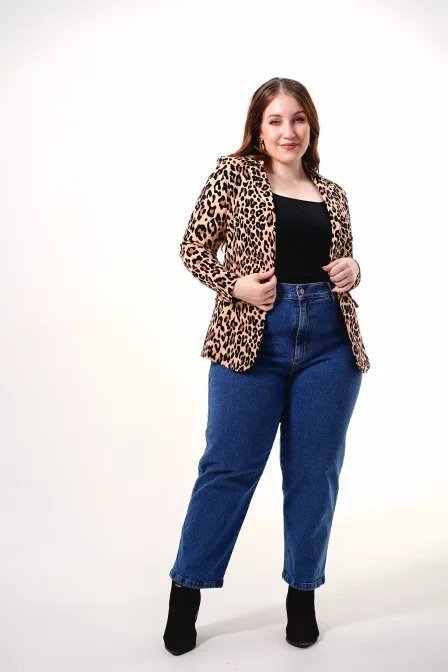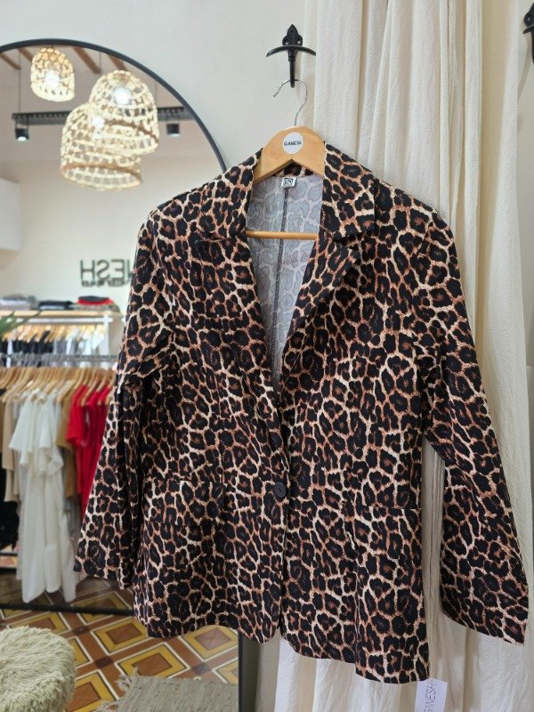 Blazer animal print, con detalle de bolsillo y hombreras. Varios talles disponibles (grandes)