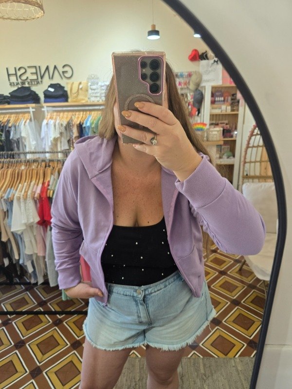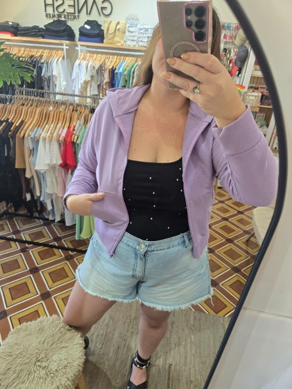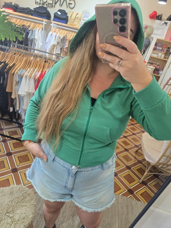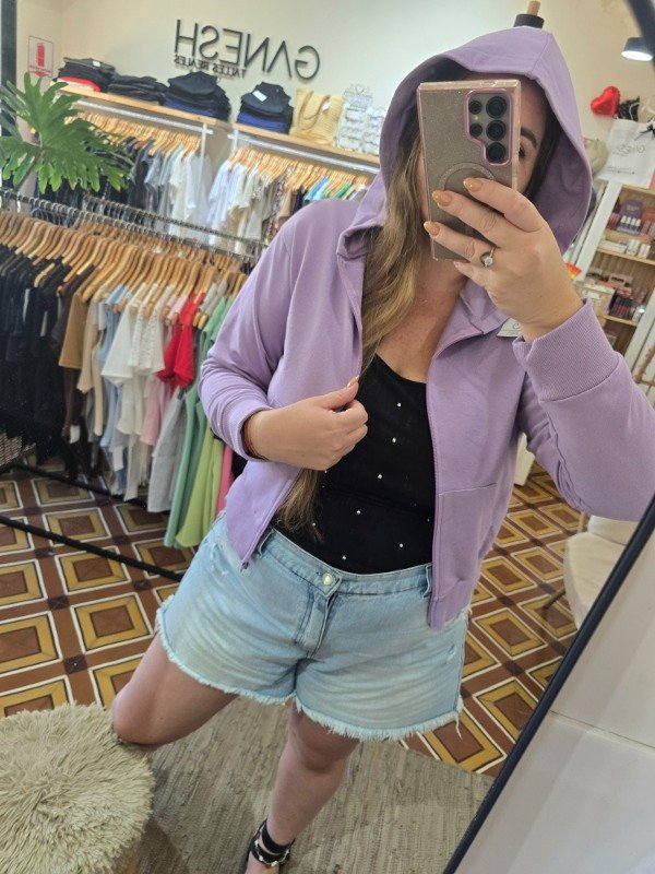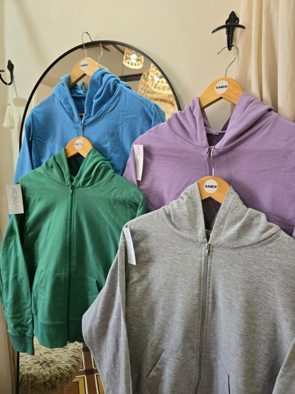 Campera de algodon rústico, sin spandex. Con bolsillos y capucha.