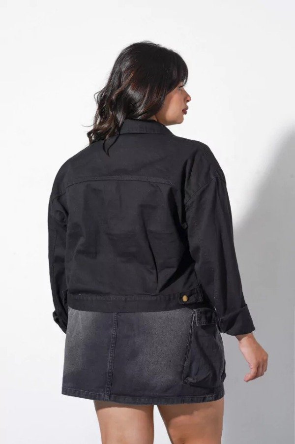 Chaqueta gabardina oversize corta. Con bolsillos. Talles grandes.
