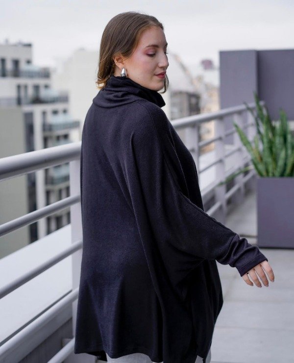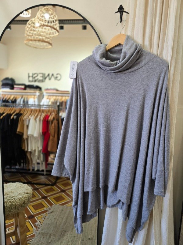 Sweater poncho de lanilla super amplio, abarca hasta un talle 10 aproximadamente.