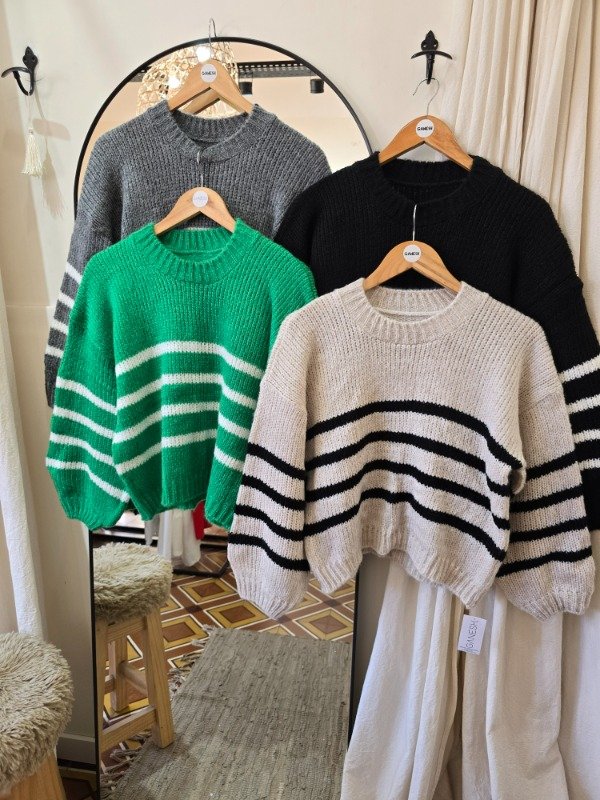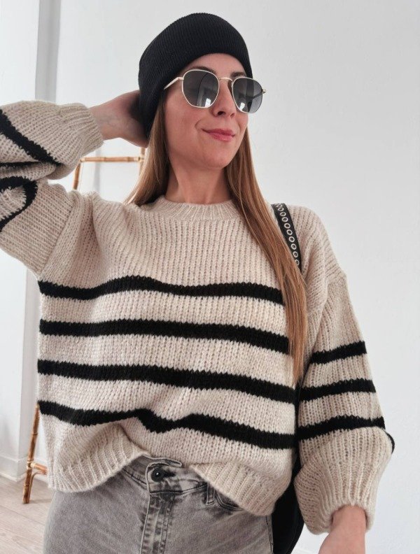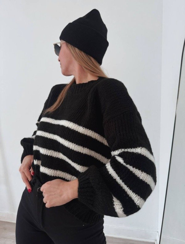 Sweater tejido, manga bobo. Abarca hasta un L aproximadamente.