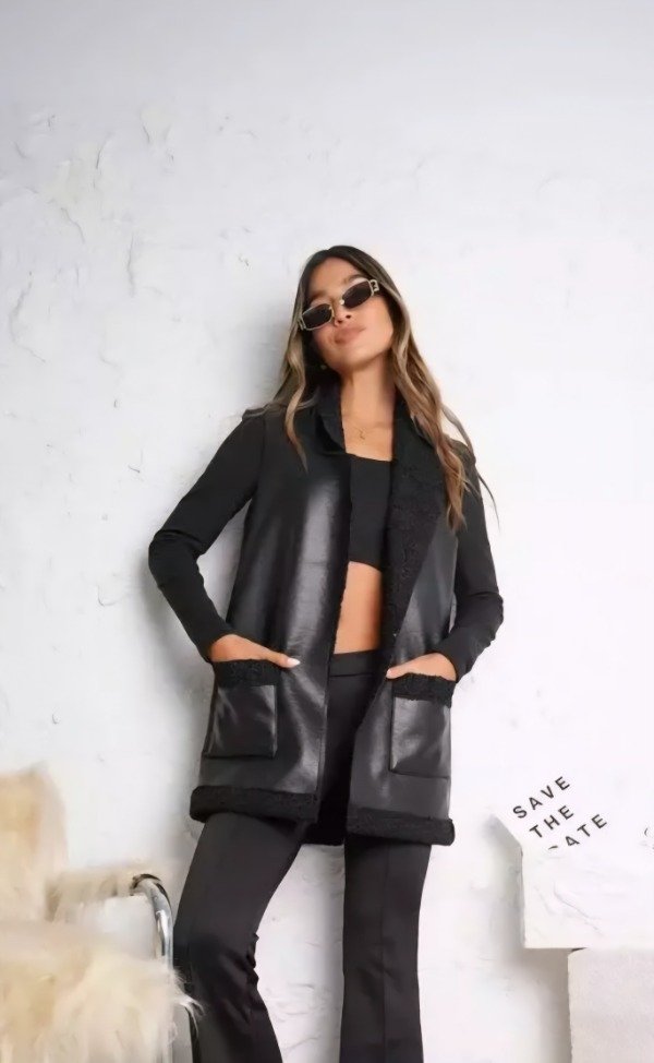 Chaleco engomado con corderito, talle unico. Abarca hasta un M aproximadamente.