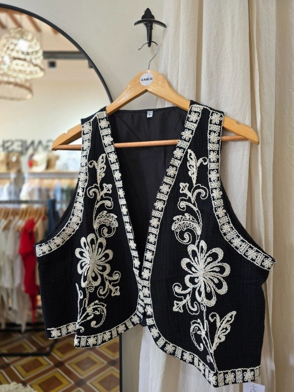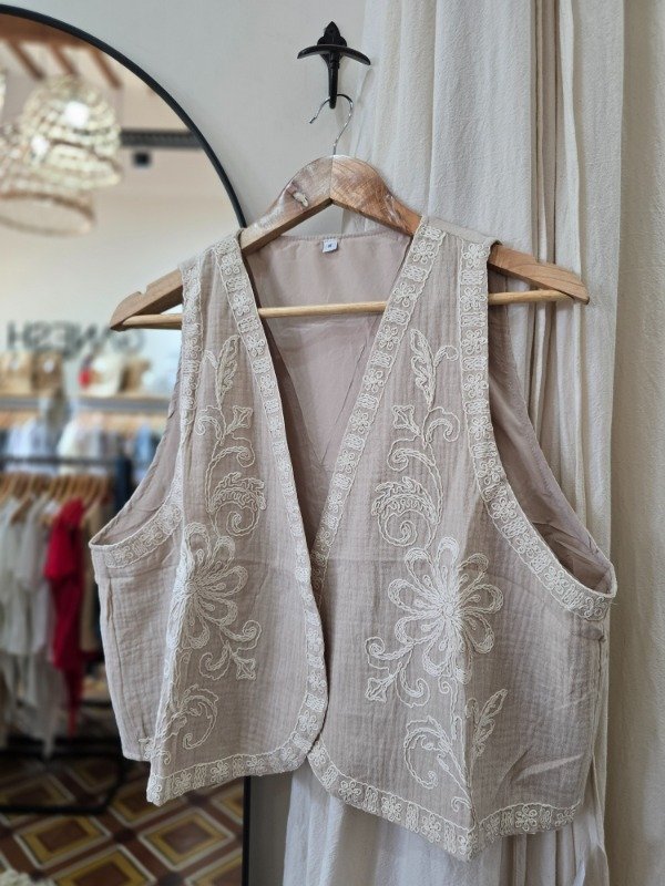 Chaleco importada de lino, forrado en el interior con detalle de bordado. Varios talles disponibles.