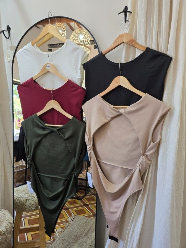 Body de microfobra sinn mangas, con la espalda descubierta. Disponible en varios talles.
