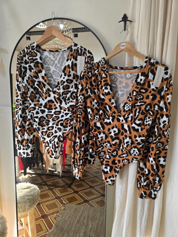 Body animal print modal soft, cintura plizada. Talle unico abarca hasta un talle L aproximadamente.