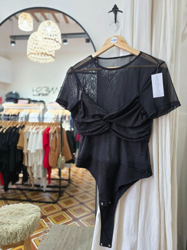 Body de tul con detalle en busto de cristal brilloso. Disponible en varios talles (grandes)
