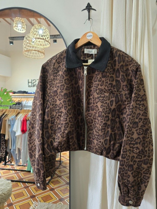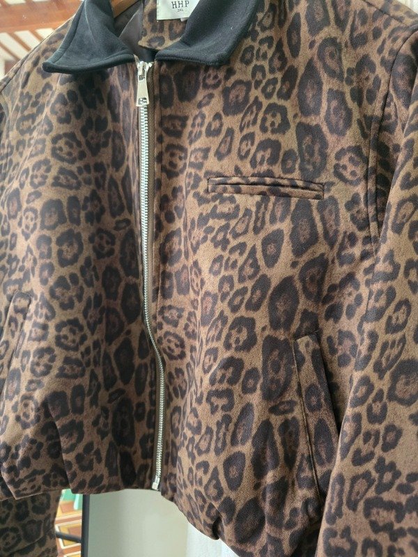 Chaqueta importada animal print, con bolsillos. Interior forrado. Tela gamusada