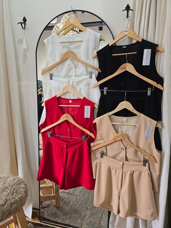 Conjunto con chaleco y short. Con elástico detrás de la cintura.