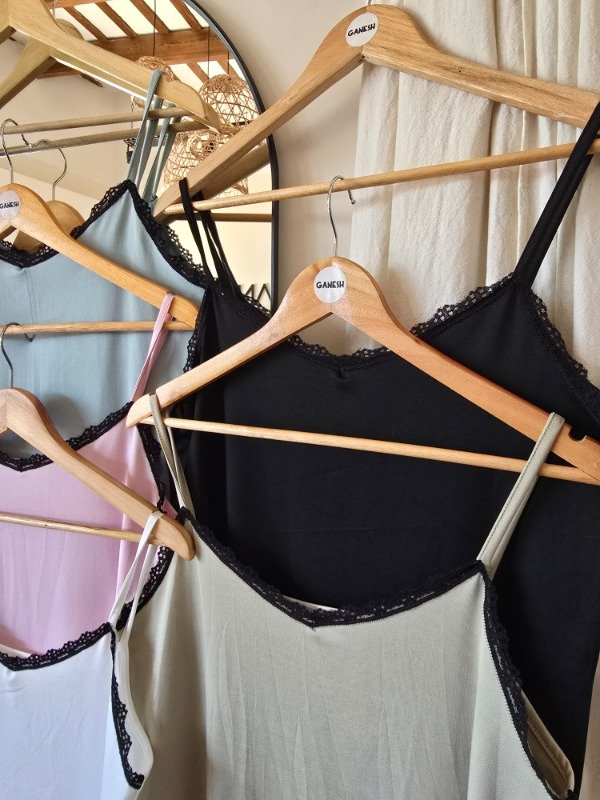 Musculosa de lycra premium con detalle de puntilla en color negro. Talle unico abarca hasta un 6 aproximadamente.
