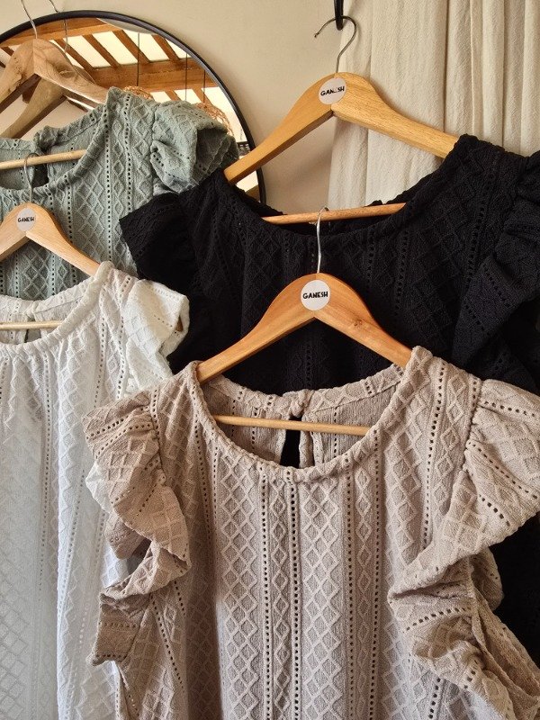 Musculosa de broderie con detalle de volados en mangas, parte tracera para atar.