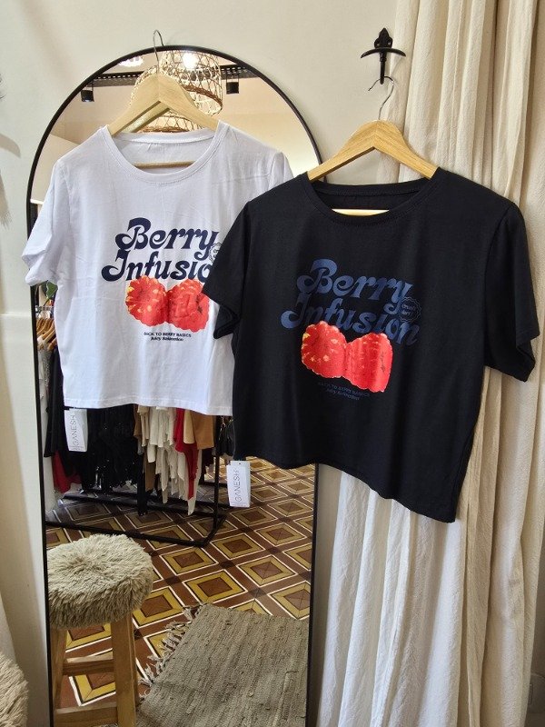 Remera crop top de algodón con estampa, talle unico, abarca hasta un talle XXL aproximadamente.
