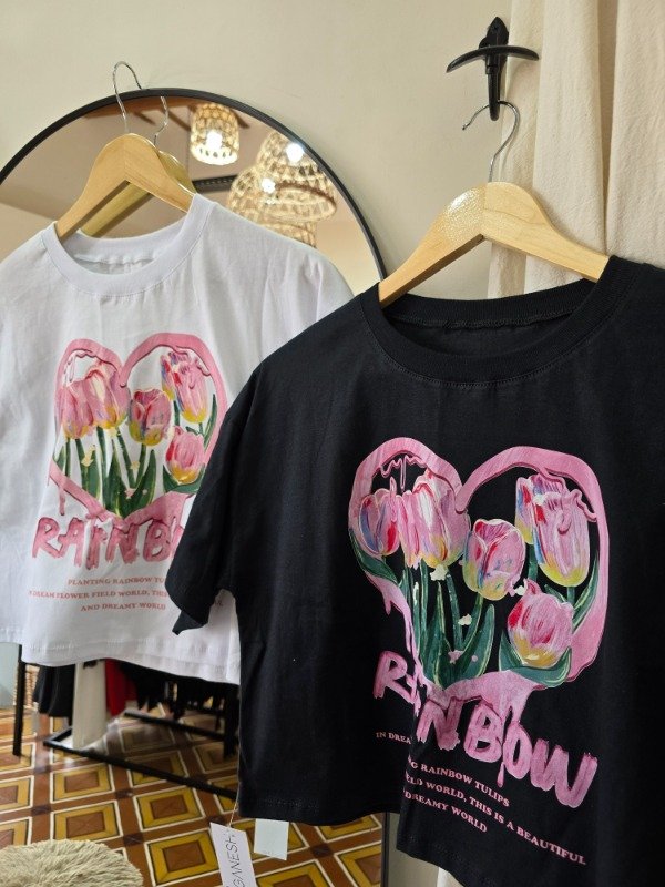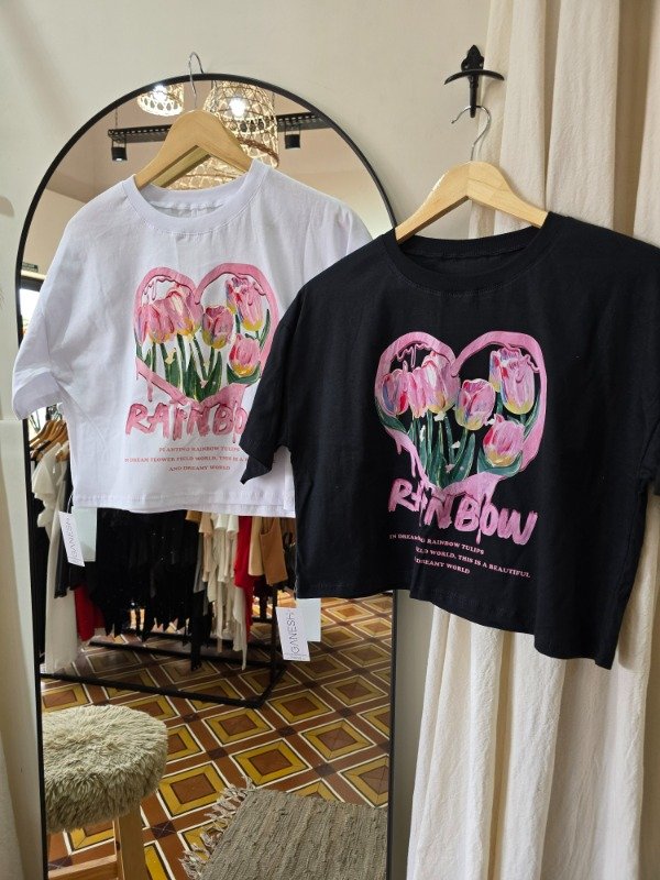 Remera crop top de algodón con estampa, talle unico, abarca hasta un talle XXL aproximadamente.