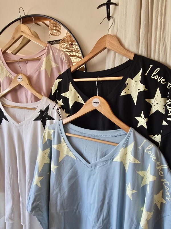 Remeron de algodón con estampa de estrellas en los hombros. Talle unico bien amplio, abarca hasta un 8 aproximadamente.