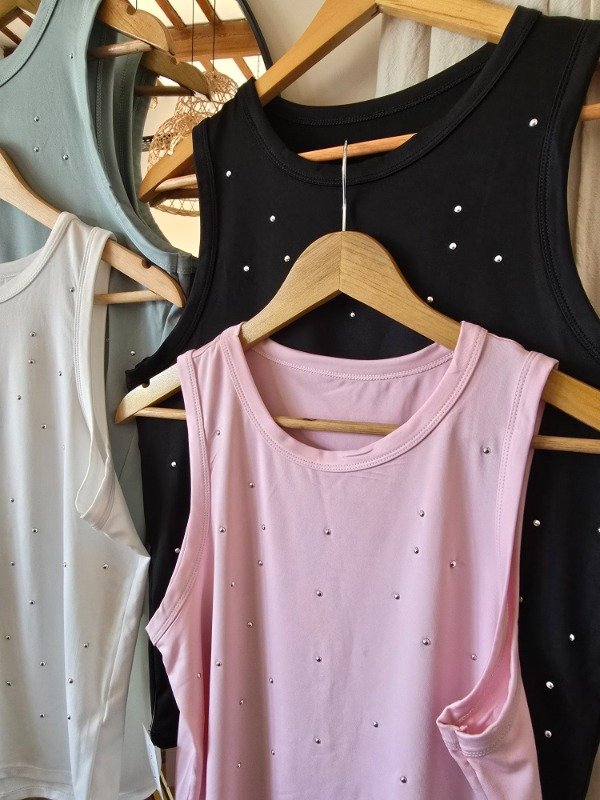 Musculosa de lycra premium con tachas plateadas. Talle unico abarca hasta un 6 aproximadamente.