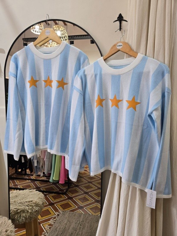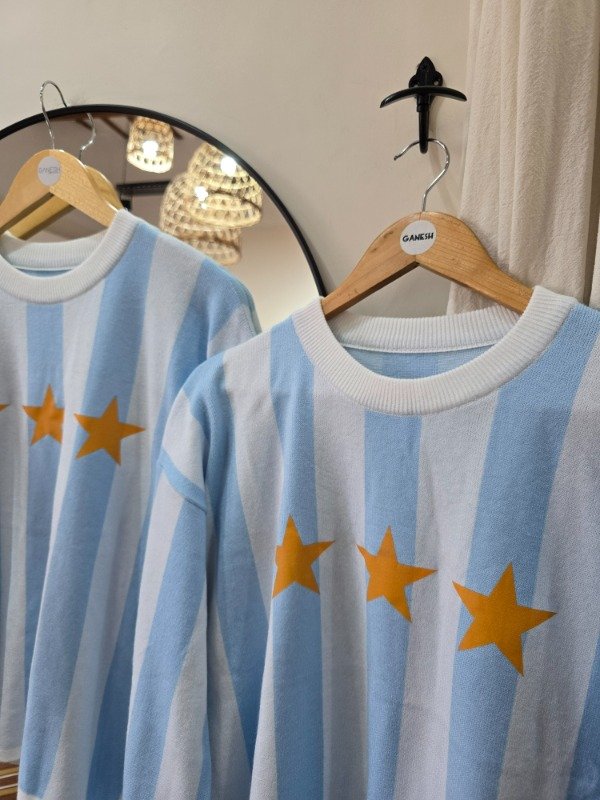 Sweater de bremer rayado con estampa de Argentina. Talle unico, abarca hasta un XXL aprox.